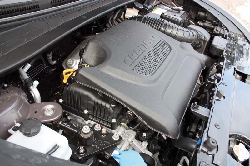 Pod prednjim poklopcem krio se jedan od najboljih dijelova Hyundaijevog SUV-a, a riječ je o modernom 2.0-litarskom common-rail dizelskom agregatu, začinjenim varijabilnim turbopunjačem na izduvne gasova i hladnjakom vazduha. Same performanse ovog motora najbolje govore o kakvoj, vrhunskoj jedinici se radi, a glase - 184 KS pri 4.000 o/min i 383 Nm obrtnog momenta konstantno raspoloživog između 1.800 i 2.500 o/min. Sve u svemu ovo su impresivni rezultati, koji ovaj prilično uglađeni agregat svrstavaju u jedan od najjačih u klasi.