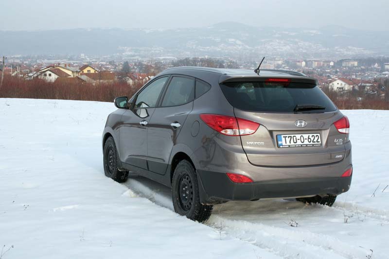 Razvijen u japanskoj kompaniji JTEKT, dovoljno kapacitetni pogon na sve točkove opremljen blokadom diferencijala namijenjen je prije svega savladavanju manje zahtjevnih zadataka, a funkcioniše tako što potpuno automatski raspodjeljuje vučnu silu između osovina. U slučaju aktiviranja blokade diferencijala snaga se između osovina distribuiše u fiksnom omjeru 50:50, a koristi se samo u slučajevima kada za to zaista i postoji potreba. Najmanji klirens Hyundaija iX35 iznosi 170 mm, što je uz napadni ugao od 24,2, izlazni od 26,9 sasvim dovoljno da se upustite u blaže avanture van asfaltnih puteva. Mjerenje performansi samo je potvrdilo ubjedljivost dizelskog motora i prenosa, jer Hyundajevom SUV-u za sprint iz mjesta do 100 km/h trebalo je 10,3 sekunde, nakon čega bi se igla brzinomjera zaustavila na 197 km/h. Dodamo li i za zimske uslove prihvatljivu prosječnu potrošnju od 8,6 litara, jasno je da je Hyundai ovim motorom konkurenciji postavio visoke standarde.