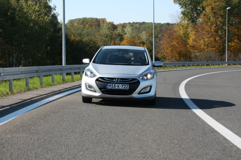 U PRAKSI Hyundaijev pogon omogućava veoma opuštenu i ugodnu vožnju otvorenom cestom i autoputem, koja dobija adekvatnu podršku u odlično zvučno izolovanoj kabini modela i30. Opštoj atmosferi opuštenosti doprinosi i pogled na prosječnu potrošnju, koja se pri brzini od 80 km/h u petoj ili šestoj brzini, spušta na nivo od oko 5,5 litara. Možda je moguće i bolje, ali u zimskim uslovima vožnje i sa zimskim gumama, navedeni prosjek je sasvim dovoljan da ga proglasimo za naše najbolje ostvarenje. Drugu stranu medalje predstavlja gradska vožnja, u kojoj početni benzinac pokazuje očekivano veći apetit. U zimskim uslovima i30 će u gradskim gužvama, s umjerenom nogom na gasu, potrošiti između 9 i 10 litara benzina.