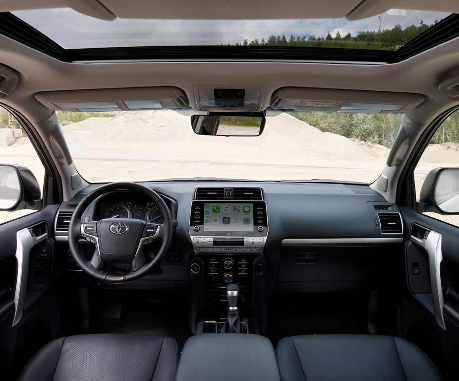 U putničkoj kabini, nivo opreme je podignut kroz unaprijeđeni multimedijalni sistem. Uz brži softver i odziv ekrana na dodir i prilagodljivi početni prikaz, novi sistem nudi povezivanje aplikacijama Apple CarPlay® i Android Auto™. Ovaj sistem se odlikuje funkcijom pretraživanja one-box, 3-godišnjom pokrivenošću kartama i osvježavanjem karata bežičnim putem. Internet usluge uključuju izvještaje u stvarnom vremenu o saobraćaju, Google pretraživač i dodatne obavijesti o kamerama za mjerenje brzine, parkiralištima, cijenama goriva i prognozi vremena. Land Cruiser se sada odlikuje drugom generacijom sklopa tehnologija za aktivnu sigurnost Toyota Safety Sense. Taj sklop je sada proširen uključivanjem sistema predsudarne zaštite (Pre-Collision System - PCS) koji sadrži otkrivanje pješaka noću i biciklista danju, te inteligentnim prilagodljivim tempomatom.