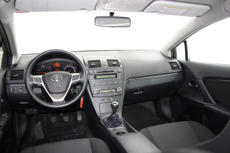 Za razliku od eksterijera, pogled u unutrašnjost najpovoljnijeg Avensisa dijelom jasno pokazuje da je riječ o modelu namijenjenom racionalistima, koji ne pate od najnovijih čuda tehnologije koja se ugrađuju u daleko skuplja vozila. Sjedišta su udobna, a kada se smjestite u vozačevo podesivo po visini, pred vama će se ukazati lijepo dizajnirani analogno-digitalni instrumenti i četverokraki multifunkcionalni servo upravljač presvučen gumiranom masom. Da je riječ o najpovoljnije modelu u gami Avensis otkriva odsustvo bilo kakvih ukrasnih elemenata, izuzmemo li decentnu niklovanu lajsnicu ispred suvozača, obrub ručice mjenjača, te metalizirani plastični umetak na upravljaču. I pored uočljivog sivila, materijali upotrijebljeni za izradu enterijera su prilično kvalitetni, što najbolje pokazuje i ugodno mekana plastika instrument table.
