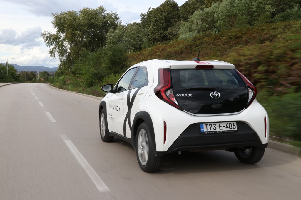 Veoma ugodna su i jednodijelna prednja sjedišta, čiji naslon omogućava da se u njemu optimalno namjeste osobe do visine od 1,9 metara. Prednjem dijelu kabine pristupa se kroz široka vrata, koja su obložena mesnatom gumom zahvaljujući kojoj su zatvaranja vrata propraćena ugodnim amortizovanim zvukom. Zadnja vrata su osjetno kraća, ali i dalje dovoljna da se pristupi klupi. Prostora za koljena ima zavisno od toga koliki su vozač i suvozač. Ako su korpulentniji Aygo X je primjereniji da bude kupe, a ako su prosječne i sitnije građe dvije osobe će se pozadi smjestiti veoma ugodno. Prednja vrata serijski dolaze u kombinaciji sa električnim podizačima stakala, dok su zadnja opremljena takozvanim „leptir“ staklima koja se otvaraju bočno. Zaptivna guma na njima je skromnija nego na prednjem paru vrata, pa je i zvuk prilikom zatvaranja metalan. Vrata prtljažnika spolja su u potpunosti prekrivena staklom, što je estetski veoma efektan detalj. Za osnovno opremljeni Aygo X poput testnog treba izdvojiti 32.300 KM, odnosno 33.480 KM koliko košta sa par opcionih dodataka. Za taj iznos dobijate simpatičan i funkcionalan gradski automobil, koji je veoma ekonomičan i koji po potrebi može prevesti i četiri osobe. Na sve to što on nudi Toyota daje jedinstvenu desetogodišnju garanciju, zbog čega se Aygo X čini veoma zanimljivom ponudom.