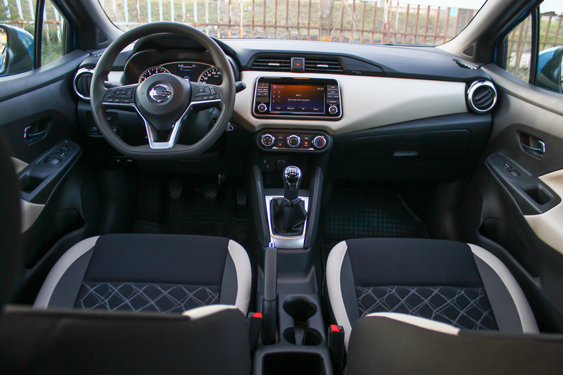 Puno sadržajnijim nego što se to s vana na prvi pogled može zaključiti Acenta paket je u kabini. Sa četiri metra dužine peta generacija Micre je punih 17 cm duža od četvrte. Mada ni prethodni model nije bio skučen naprijed, u novom se odmah osjeti veća komocija. Osim toga, čitavo vozačko okruženje je značajno drugačije, a upotrebljeni materijali vizuelno ljepši i prijatniji na dodir. Nakon neuspjelog eksperimentisanja sa prethodnom generacijom i kružnim grupisanjem prekidača na centralnom grebenu, koje je bilo više nepraktično nego lijepo, u Nissanu su se odlučili zaigrati na sigurnu kartu. Kao uzor su uzeli kabinu svog najuspješnijeg SUV modela Qashqaija, koja je u potpunosti skrojena po ukusu Evropljana. Sa njim je podijeljen i novi multifunkcionalni trokraki upravljač, koji nam se ni pored 17 daljinskih komandi nije učinio komplikovanim. Osim toga, zadovoljavajuće je precizan i ugodan na dodir, bez obzira što u testnom paketu dolazi bez kožne obloge.