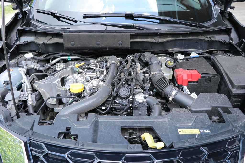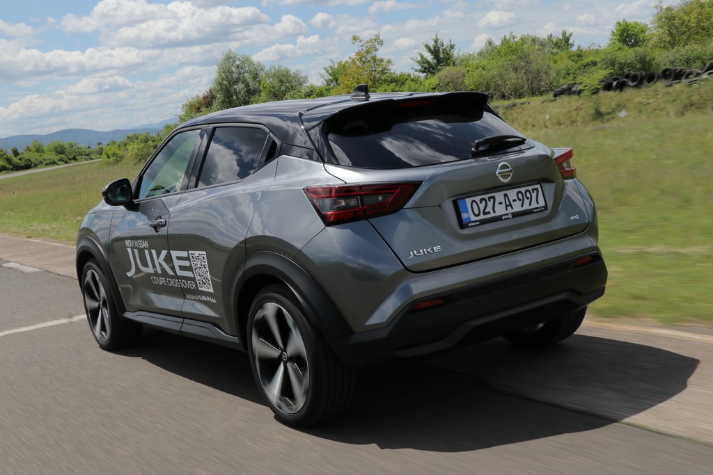 Visok stepen užitka u vožnji nudi i pogon. Mada se na papiru čini skromnim za format automobila poput Jukea, koji teži 1.182 kg, novi 1,0-litarski turbobenzinac sa 117 KS odlično obavlja svoj posao, bez karakterističnih trocilindarskih vibracija i neravnomjernog razvoja snage. U zahtjevnom zadatku odlično se nadopunjuje sa 7DCT automatskim mjenjačem sa dva kvačila, koji s uvjerljivim lakoćom uvijek bira optimalnu brzinu, te se veoma lako prilagođava različitim stilovima vožnje. Promjene brzina u startu znaju biti ponekad energičnije, sa osjetnim trzajima, koji se potpuno gube sa povećanjem brzine, što je odlika većine mjenjača sa dva kvačila. Mali benzinac oduševljava i ekonomičnošću, pa smo u Eco režimu vožnje s njim postigli najmanji prosjek od 4,3 litra. Na otvorenoj cesti računajte na prosjeke između pet i šest litara, dok je u konstantnoj gradskoj vožnji realno očekivati sedam.