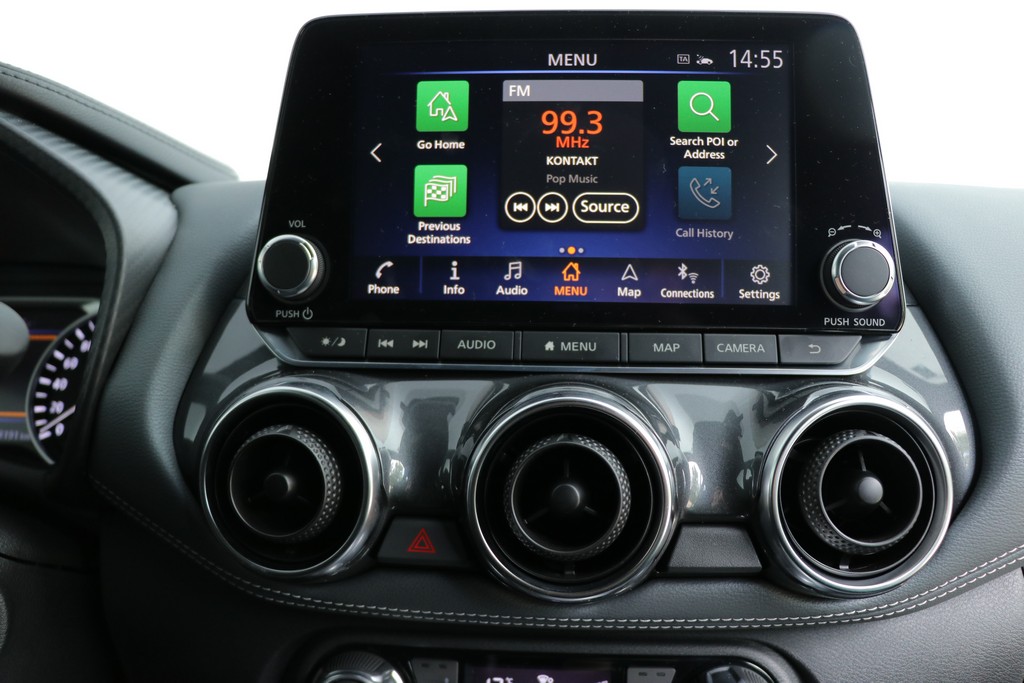 Da na originalan način ide u korak sa konkurencijom Nissan u enterijeru potvrđuje i sa konceptom poludigitalnih instrumenata, koji kombinuju 7-inčni kolor ekran u sredini sa okruglim hronometrima. Mada neki od konkurenata nude potpuno digitalizovane instrumente, Nissanovo rješenje nam se u ovom trenutku čini otmenijim i efektnijim. Na centralnom grebenu je 8-inčni na dodir osjetljivi ekran, na kojem je osim navigacionih mapa i raznoraznih sadržaja vezanih za autonomiju, audio sistem i različita podešavanja vozila, moguće vidjeti i prikaz nadzornih kamera, koje pokrivaju 360 stepeni oko vozila. Za razliku od mnogih konkurenata, koji pristupaju sve snažnijoj digitalizaciji upravljanja, Nissan još uvijek mnoge klasične komande smatra nezamjenjivim, što je adut više u privlačenju tradicionalnih kupaca.