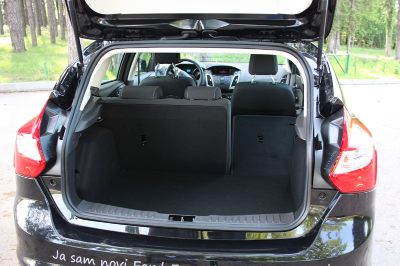 Komocije ima dovoljno u svim pravcima, pogotovo na udobnim prednjim sjedištima koja pružaju i dovoljno bočnog držanja, ali napomenućemo da će forma masivnog središnjeg stuba u predjelu koljena smetati nešto višim osobama. Ono što je posebno zanimljivo je činjenica da je Ford novog Focusa u poređenju sa prethodnikom snizio za 12, suzio za 16, ali i produžio za 21 mm, što je rezultovalo i dalje dovoljno prostranim enterijerom. U zadnjem dijelu novi Focus nudi djeljivu zadnju klupu, na koju se udobno mogu smjestiti tri odrasle osobe, iza kojih na raspolaganju stoji prtljažnik zapremine od osnovnih 316 do krajnjih 1.148 litara.