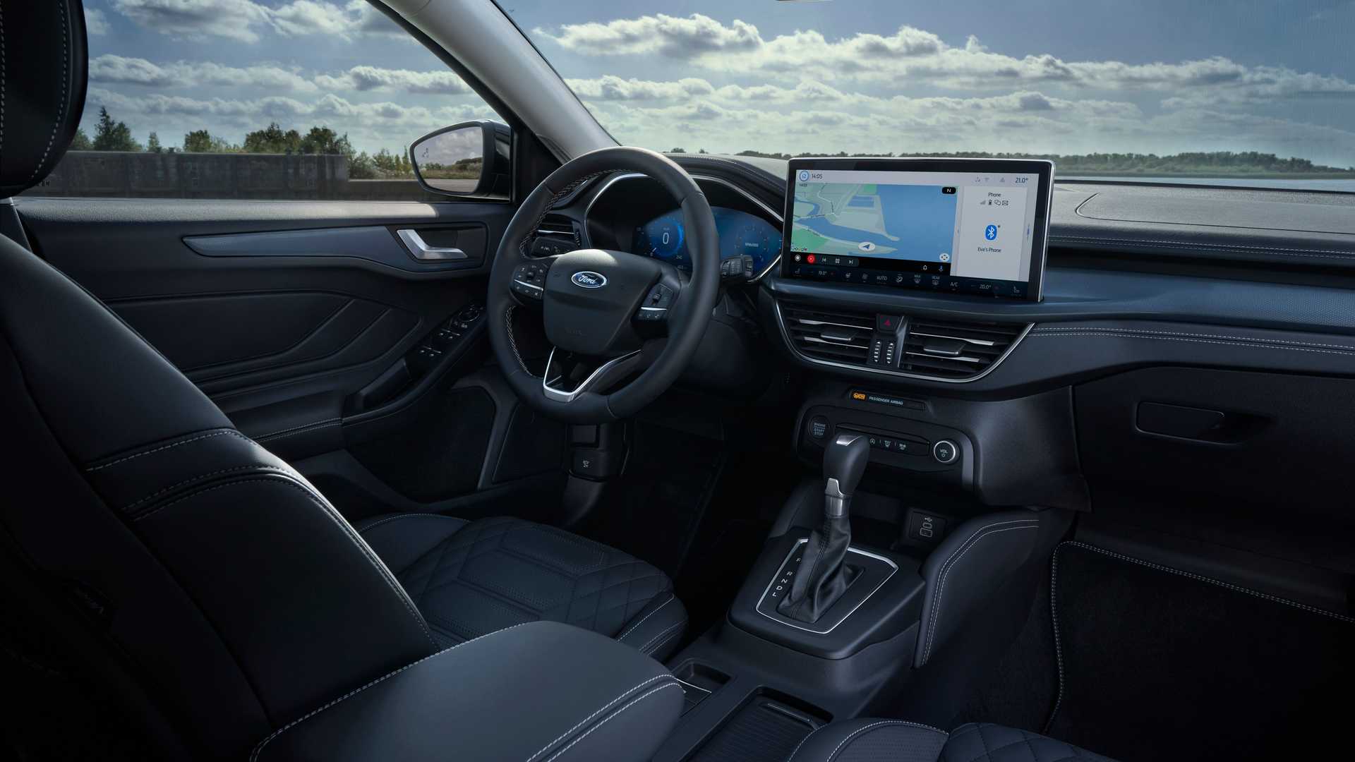 Unutrašnjost kabine pretrpila je još veće izmjene, jer je Ford u ažurirani Focus inkorporirao najnoviji infotainment sistem SYNC4. Tako se sada na centralnom dijelu konzole nalazi 13.2-inčni, ekran osjetljiv na dodir, koji ima mogućnost povezivanja sa aplikacijama Apple CarPlay i Android Auto. Takođe povećane dimenzije sistema, znače da više nema mjesta za tradicionalne manuelne postavke klime, čime ovaj prostor ostaje bez tastera i komandi koje su ga krasile do sada.